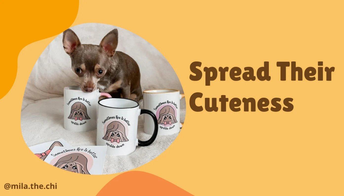 Photos of your pet just aren’t enough if you want them to be a pet influencer. Cute illustrations and graphics are where it’s at. Take Mila The Chi, for example. You can find illustrated versions of the chihuahua on stickers, mugs, totes, etc., in her shop. These are the kind of designs that will appeal to a wider audience.