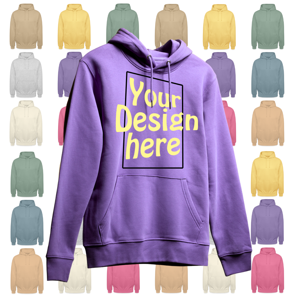You can choose from a wide range of hoodie styles: unisex, women’s, men’s, children’s, cropped, oversized, zip-up, organic hoodies or hoodie dresses. Most hoodies are made from premium cotton blends or 100% organic cotton – perfect for long-lasting prints or embroidery.